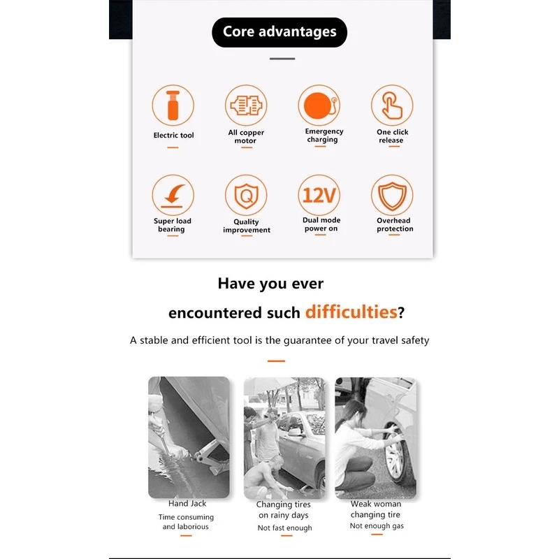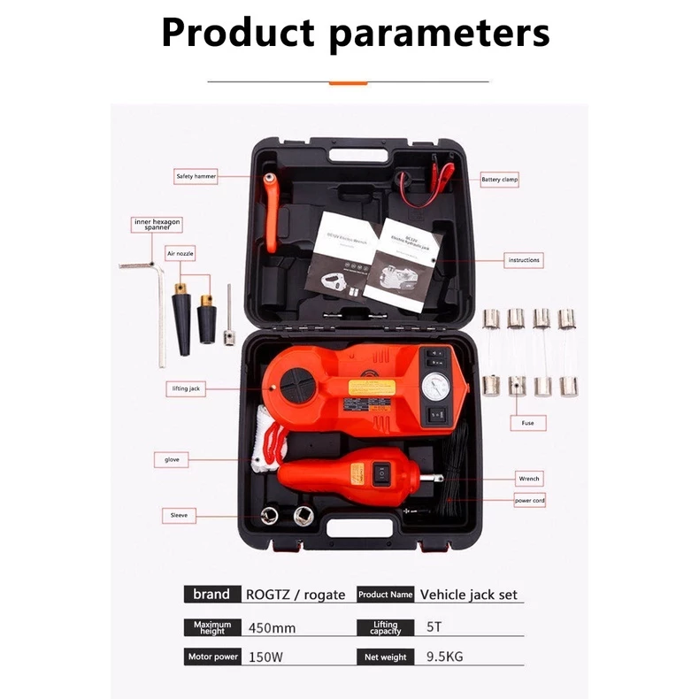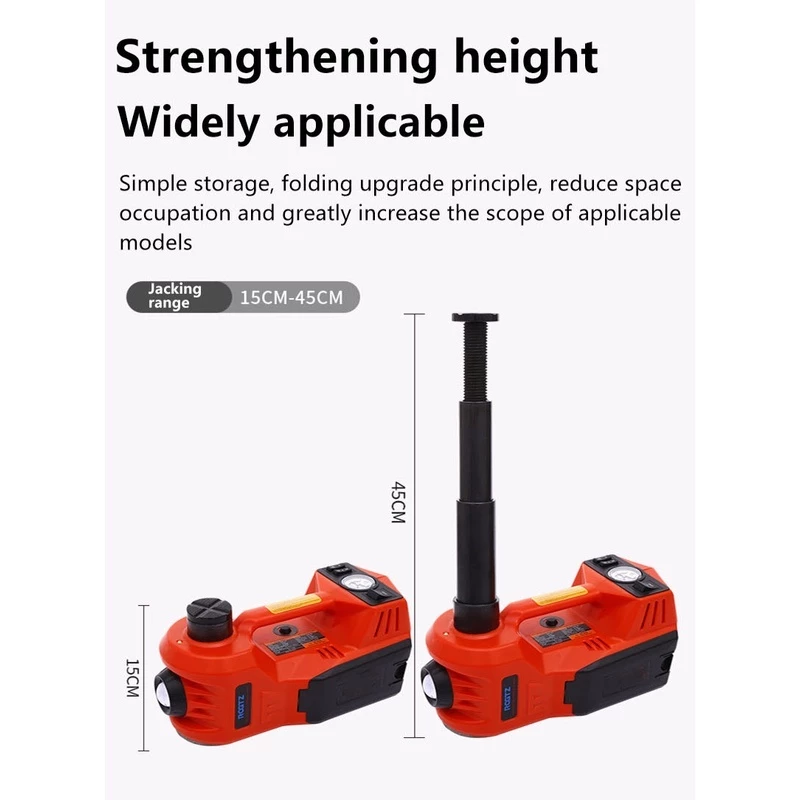 This 12V Electric Car Lift Jack Set is a powerful and efficient tool designed for lifting vehicles safely and easily. With a 5-ton lifting capacity and a range of 13.5–36 cm, it’s compatible with most car models. The heavy-duty alloy steel construction ensures strength and durability, while dual pure copper motors provide fast and stable lifting. Additional features include an integrated air pump, LED emergency light, and a warning signal for added nighttime safety. Ideal for roadside emergencies and car maintenance.