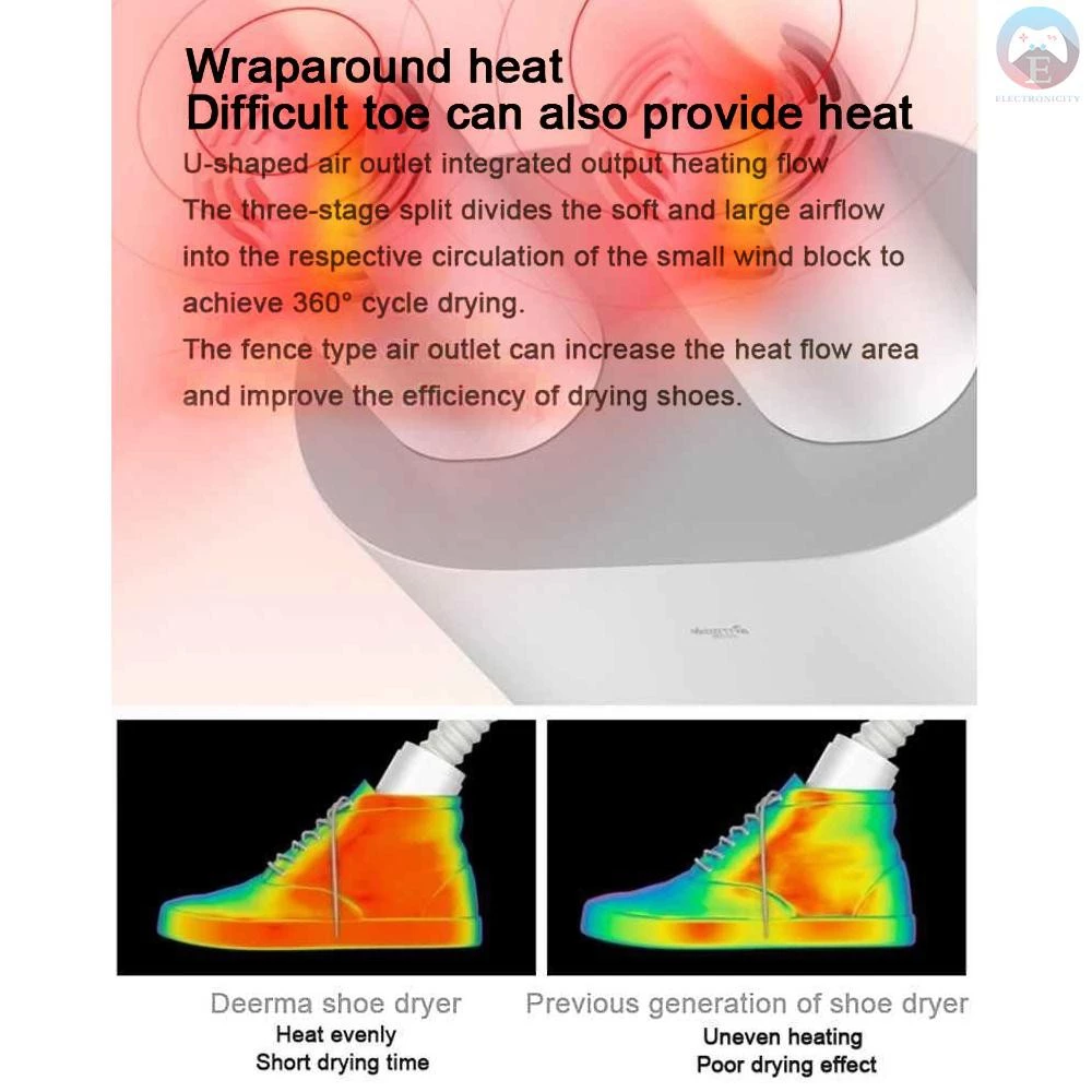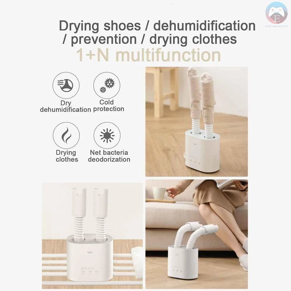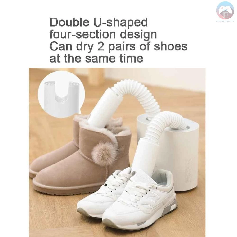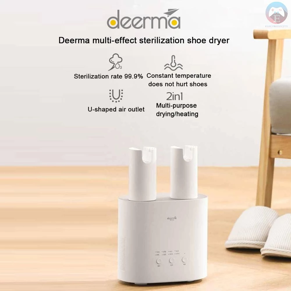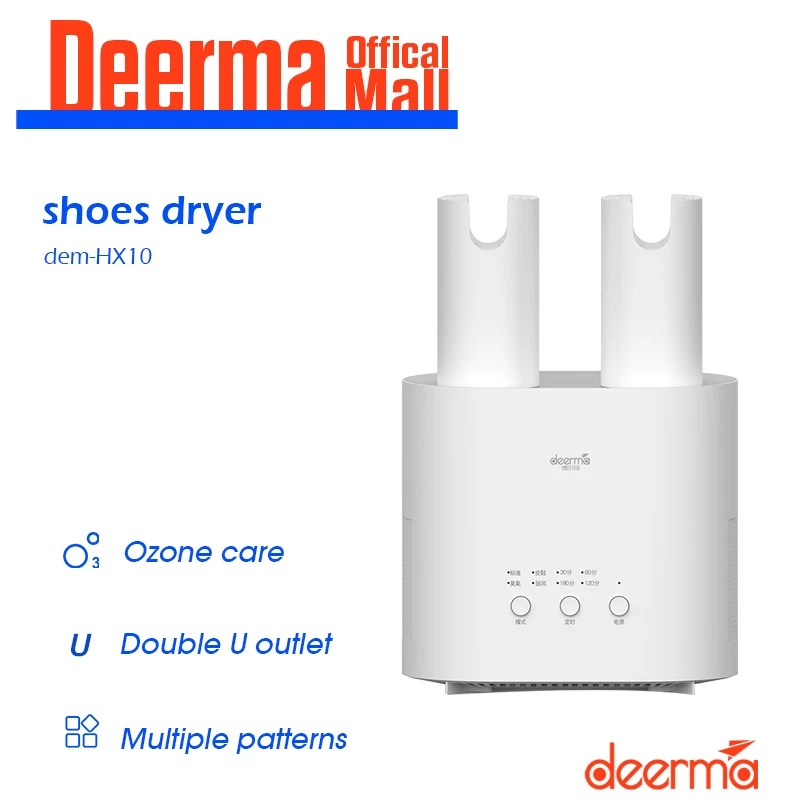 The Deerma HX10 is an intelligent electric shoe dryer designed to quickly eliminate moisture, odors, and bacteria. Featuring UV sterilization, ozone deodorization, and a U-shaped dual air outlet, it dries up to two pairs of shoes simultaneously. With adjustable drying modes, a retractable hose for deep reach, and compact design, it ensures your shoes stay dry, fresh, and hygienic. Ideal for all types of footwear, with fast 15-second heat-up and button control. Compatible with 220V EU plug systems.
